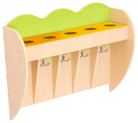 Полка для кружек с зеленой аппликацией. 5 крючков и полка из органического стекла для кружек. Место для наклейки для каждого ребенка. Комплект из 5 кружек и 5 полотенец (199014) продается отдельно. # разм. 64 x 20 x 52 см